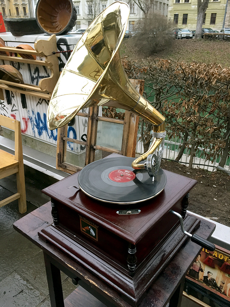 Naletel sem tudi na starinski gramofon kakršnega sem do sedaj videl le na televiziji. Takšnega kot so jih imeli v Imperiju pregrehe. V živo ga nisem videl še nikoli. Kaj šele slišal. Možakar je namestil gramofonsko ploščo z zapisom nekega starega swinga – kot se za takšno napravo tudi spodobi – in pognal gramofon v delovanje. Dokazal je, da zadeva po vrsto letih, še vedno deluje. Zvok je nikakršen, več ali manj nekakšno hreščanje brez kančka basa in barve, a sem prepričan, da je v preteklosti pognal v ples nemalo nog. Ima neko dušo.