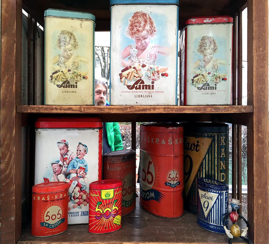 Na Bregu ob Ljubljanici je bil bolšji sejem. Ponudba je bila še kar pestra. Ob vseh teh rekvizitih iz preteklosti postanem kot radoveden otrok. Podobno kot takrat, ko smo se otroci preganjali po kakšnem podstrešju, polnem razne krame. Obožujem starine. Sicer jih ne lastim praktično nič, a so mi všeč. Všeč so mi stvar z zgodbo. Kovanci, pipe, mlinčki za kavo, gramofoni, pohištvo, porcelan, uniforme, stari analogni fotoaparati, knjige … Ko vidim kakšen predmet iz časa svojega otroštva me vedno prevzame občutek nostalgije. Jugoslovanski dinarji, tolarji, pa boni, če se jih še kdo spomni. Tisti denar, ki je bil aktualen zelo kratek čas, mislim da takoj po osamosvojitvi? Kovinske škatlice legendarnih bombonov 505, stari plakati – zdaj že pozabljenih – sladkarij in tako naprej.