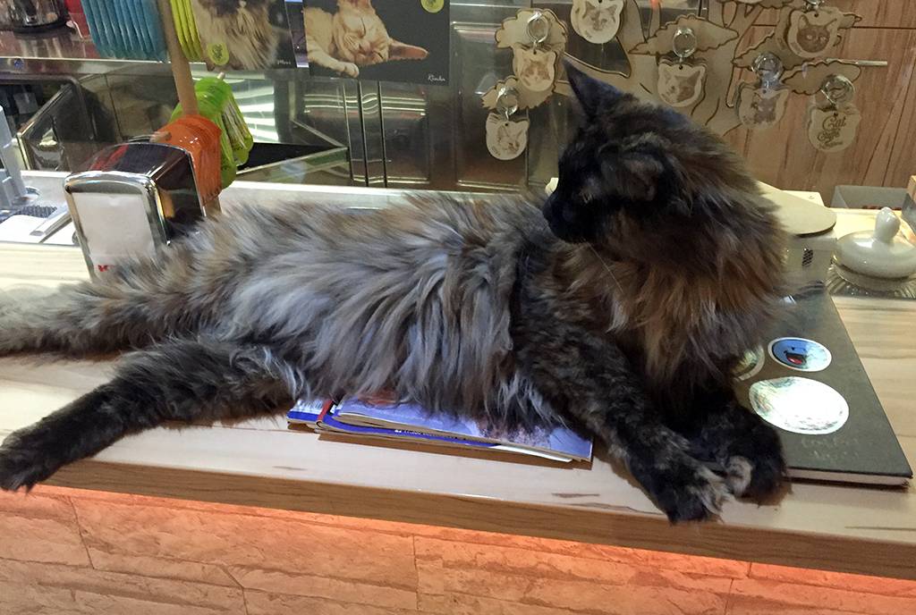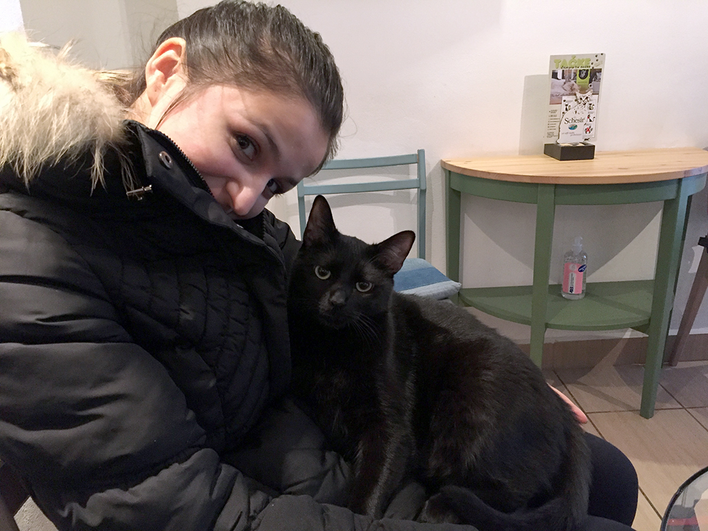 Že od malega sem velik oboževalec mačk. Pred kratkim sem na televiziji zasledil nov lokal, ki se je odprl v Ljubljani. Od ostalih se razlikuje v tem, da se po njem prosto sprehaja kup mačk. Pravih mačk. Seveda je za čistočo poskrbljeno in obstajajo tudi določena hišna pravila. Celo razkužila za dezinfekcijo rok so pri vsaki mizi. Nuša je na mačke kar precej alergična. Ne v smislu, da jih sovraži, govorim o pravi alergiji. Jebena situacija, nekaj obožuješ, ne smeš pa se dotakniti, ker ti lahko škodi. Ampak saj je velikokrat tako v življenju kajne? A kljub temu je tvegala, saj se ni mogla upreti njihovi ljubkosti. Piješ čaj, okoli tebe pa gnezdijo mačke. Kakšna ti skoči tudi v naročje. Lokal premore štiri pasme. Devon Rex, dva Maine Coona, eno Sveto Birmanko in eno klasično, domačo mačko, takšno kakršno vidite na sosedovem vrtu. Všečna kavarna.