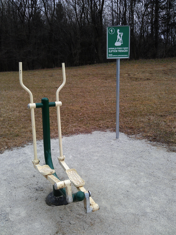 No nazaj na temo. In med sprehodom sem postajal spet vedno bolj presenečen. Navdušen. Tudi poti okoli jezera so popeljali na naslednjo raven. Očitno je občini mar za ljudi saj so poti odlično urejene in še več, ob poteh so uredili čudovite naravne pripomočke za vadbo. Iz lesa narejene konstrukcije, ki so namenjene najrazličnejšim vadbam. Nekakšen fitnes v naravi. Zares super. Najdete lahko celo eliptik, ki deluje precej dobro! Zadeva je popolna za pomladne in poletne dni saj te “naprave” nudijo ogromno različnih možnosti vadbe. Tako lahko fitnes preložite spet do takrat, ko bo postalo preveč mrzlo. Če le znate uporabiti malo domišljije. Naj omenim, da so ob vsaki napravi tudi grafična navodila, ki ti prikažejo možnosti vadbe. Zares na nivoju! Navdušen sem do te mere, da bom tu in tam prišel teči tudi v Velenje. Pa čeprav je do tja 20 kilometrov. Bom pa po vadbi šel še kofetkat s tamkajšnjimi prijatelji.