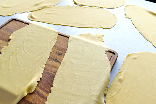 V bistvu niti ni toliko vazno kako dolgo jih susis. Vcasih jih dam kuhat tudi kar cisto sveze in se kuhajo potem tudi nekoliko manj casa. Ce jih zelis spraviti za drugic jih pac das susiti cez noc, oziroma tako dolgo, da so trde (kot kupljene) in jih spravis. Jaz imam najraje cisto sveze :). Paziti pa moras, da nebi predolgo susila te zvaljane trakove testa, ki jih bos potem razrezala v testenine. V tem primeru bi testo lahko postalo prevec krhko. Trakove jaz susim nekje okoli 10 minut ali pa se manj. Glavno je, da se ne presusijo in ne postanejo krhki.