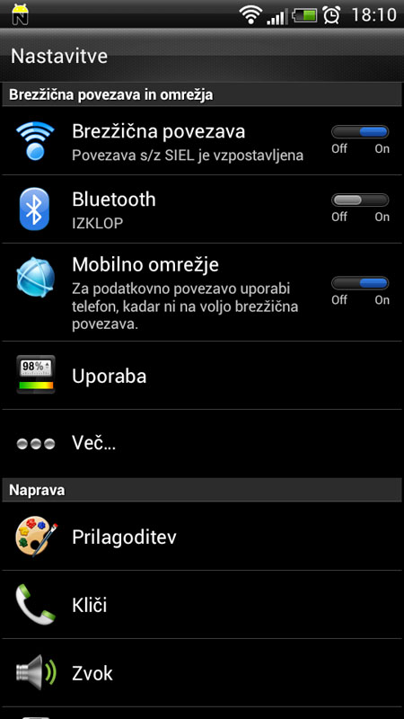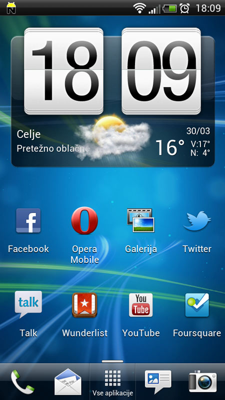 Eden izmed pomembnejših razlogov za menjavo raznih romov pa je bil iskanje možnosti, da bi fotoaparatu lahko nastavi proženje z fizičnim gumbom. Brez sreče. Nihče tega ne nudi za HTC Sensation, kar me res mori. Ta prekleti gumbek na ekranu je smotan, brezzvezen in neuporaben. Super bi bilo. če bi lahko nastavil fizični gumb. Ampak ne gre, vsaj jaz ne najdem. Energy in Extreme Sensation sta mi bila precej všeč. Coredroid je imel super hitri meni, saj je nudil veliko dodatnih možnosti ampak mi je vmesnik bil fuj. Nato sem testiral novega Android Revolution HD verzija 6.5.5. Ta mi je bil takoj všeč. Med inštalacijo je nudil še uporabo modificiranega kernela in mi tako sedaj CPU teče s taktom 1,6 GHz. 1,6GHz dualcore v jebenim telefonu. Kdo bi si mislil hehe. Vmesnik sem si prilagodil tako, da mi je všeč. Vse deluje, ima spustni meni, opozorila … skoraj vse kar je imel stock rom od Sensationa. Sedaj imam tudi Slovensko tipkovnico in T9. Pisanje je neverjetno hitro. Sicer šminka ni ravno tako [tooltip title=”Info” content=”Sleek pomeni lepo, elegantno, čudovito, moderno …” type=”info” ]”sleek”[/tooltip] kot je bila pri privzetem romu, ampak bom preživel. Drugače je izgled precej podoben original OS-u. Tudi widget na prvi strani z uro in vremenskim stanjem je še vedno čudovit kot prej. Ljubim ta widget. Torej izgled vmesnika je zelo ok. Ker imam rad šminko, sem tudi s te strani zadovoljen. Je pa spremenjen izgled določenih aplikacij, kot je naprimer Talk. Mi je prej bil skoraj bolj všeč. No, ampak tudi ta je super.