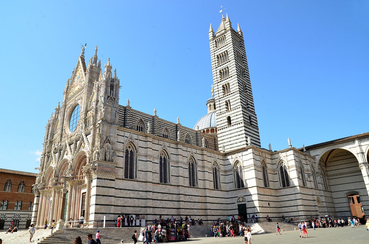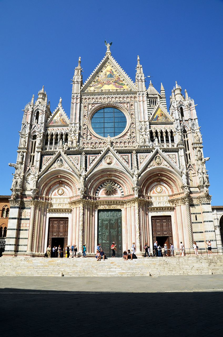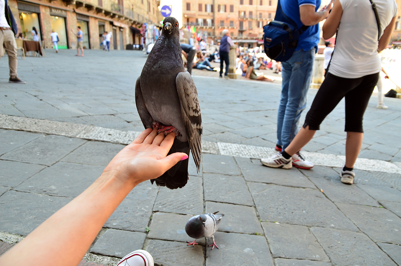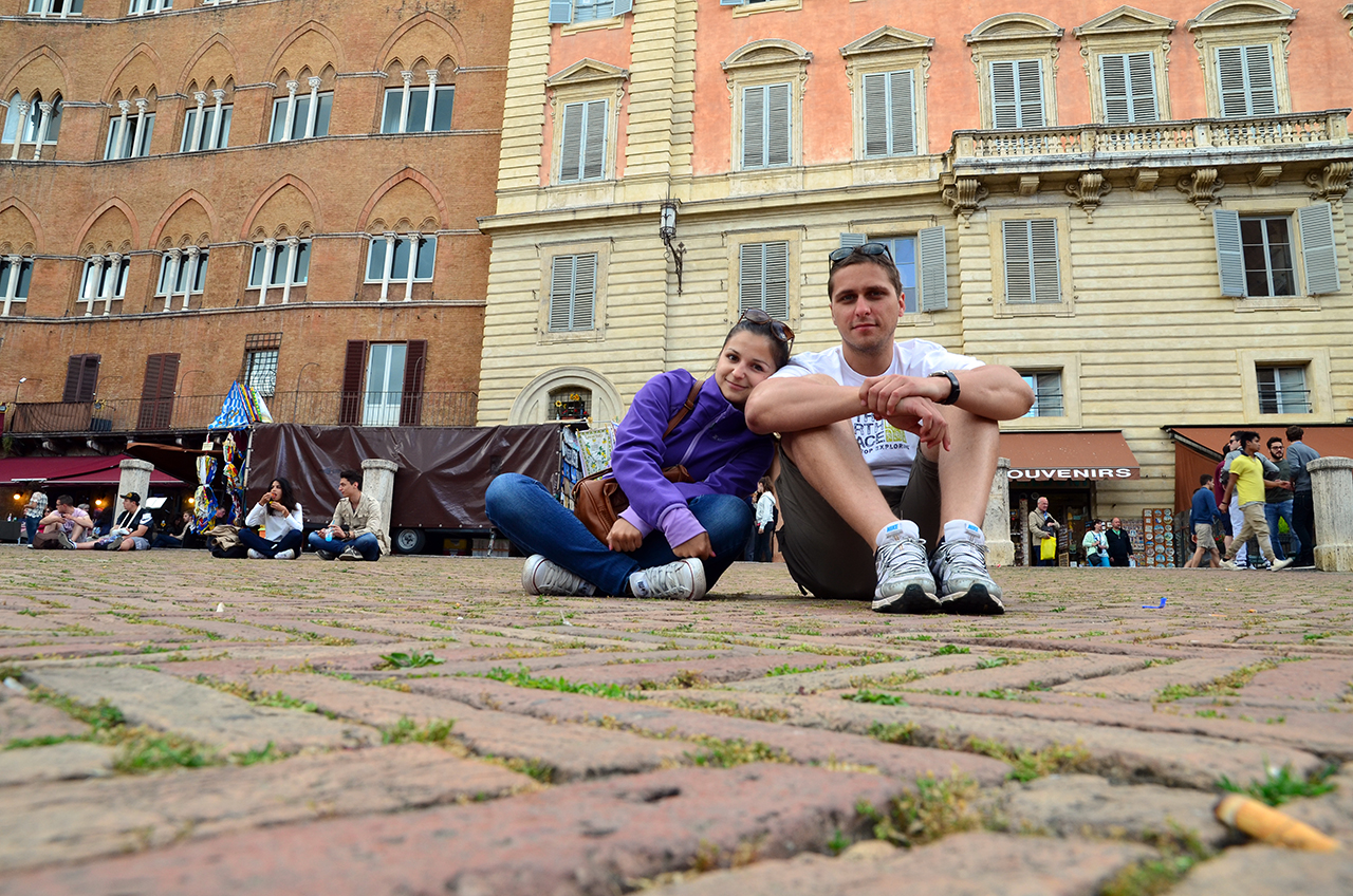 Odločila sva se, da štartava z nedeljo. Prvi dan je bil plan najprej najti apartma, saj je bil ta na hribovitem območju, odmakjen od mesta. Po nekaj težavah – prekleti Garmin – sva ga končno našla. Ker sva imela časa še precej, sva prvi dan več ali manj obiskala samo Sieno. Čudovito mesto. Tu sva si privoščila degustacijo lokalnih sirov in mesnin ter seveda chiantija, pa sladoled, katerega sva delila z golobi. Tako lepo se kulinarično razvajati nekje v zakotni, starinski ulici sredi Siene je zelo romantično. Ampak seveda romantiko hitro pokvarijo horde turistov s svojimi selfie palicami. Vsi imajo selfie palice. :)