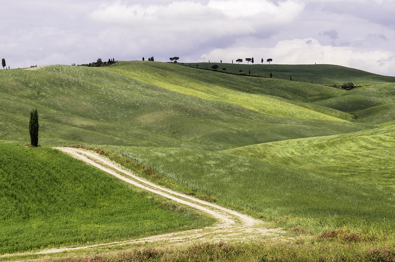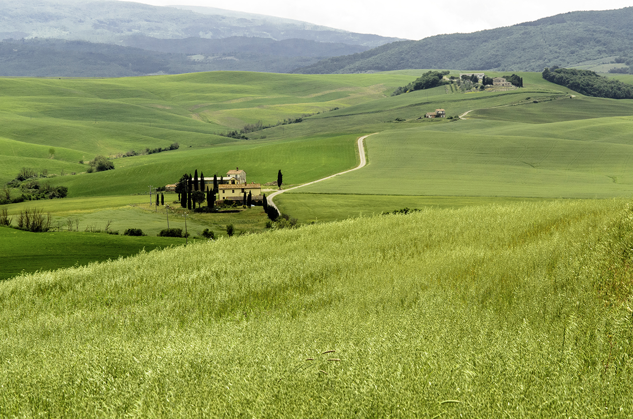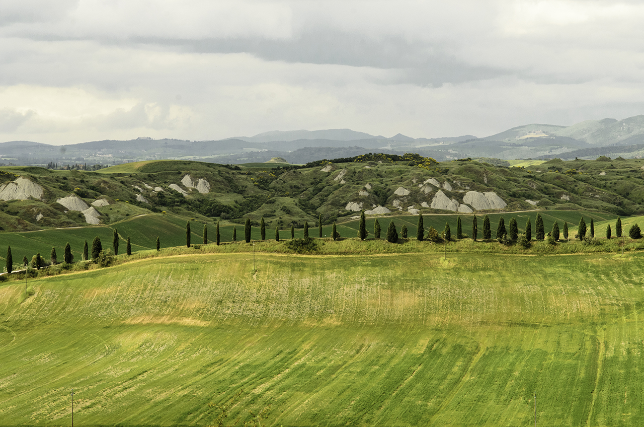 Da morda nekomu olajšam iskanje. Če želite zares magične prizore pokrajine, filmske scene, potem se opdravite v ruralne dele Toskane. V območje Val d’Orcie. Ko sva prispela v to območje so me na enkrat v glavo zadeli prizori, ki sem jih srečeval na kičastih fotografijah. Neskončna polja zelene pšenice, košene trave, detelje … Fotoaparat sem prestavil v višjo prestavo in se z avtom ustavljal vsake pol kilometra. S časom verjamem, da sem Nuši s tem že najedal. Seveda pa je pogoj, da se ne vozite le po glavni cesti, ampak zavijete tudi na kakšne makadamske ceste in ozke cestice, ki vodijo po hribovju. Največ sva raziskovala po območjih Pienze, San Quirco d’Orcia, Montalcino, Monticchiello, d’Orcia Castiglione … pač največ na območju Val d’Orcie. Obiskala sva vsa hribovita mesteca kot je Pienza, San Gimignano, Volterra, Radda di Chianti itd. Zares čudovita mesta za pogledat. Seveda pa ogromno turistov. Za izjemne naravne lepote bi omenil še eno pot. Pot iz mesta Asiago proti Sieni. Tukaj se odpirajo prizori, ki te resnično zadanejo. Ob cestah so redni odcepi, da se lahko ustavite in fotografirate.