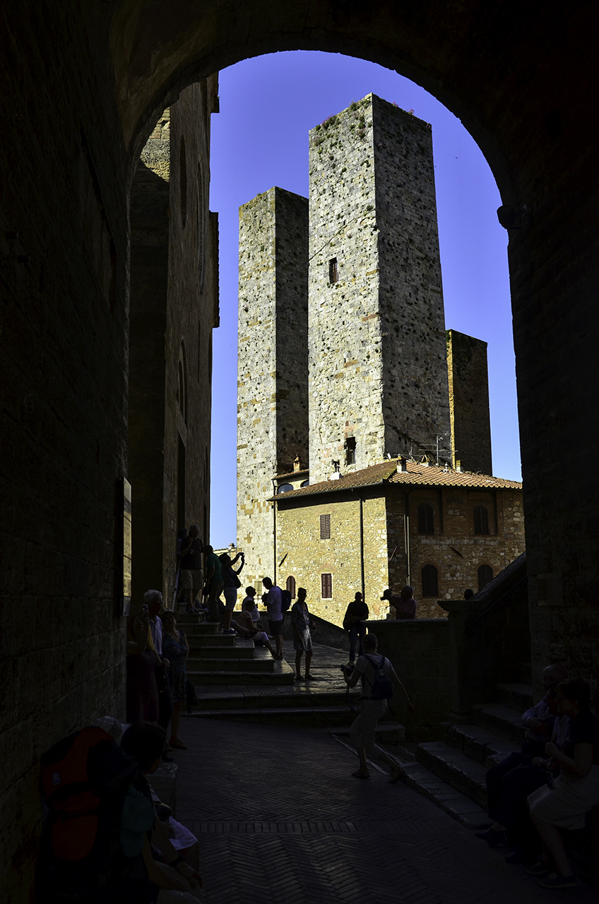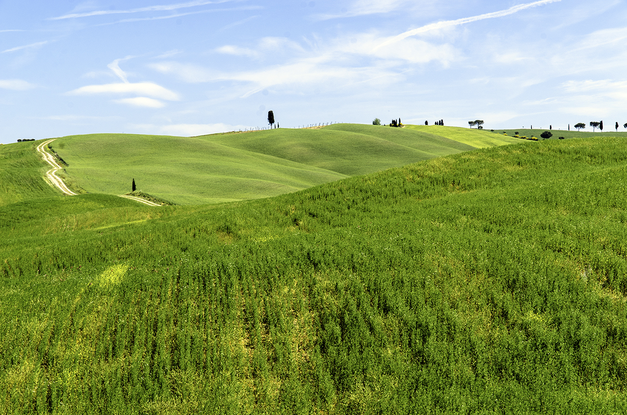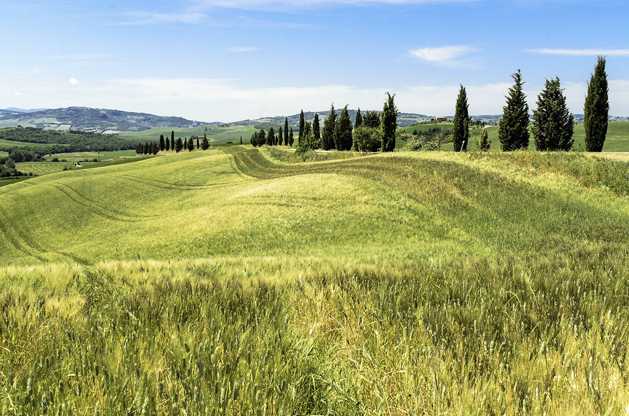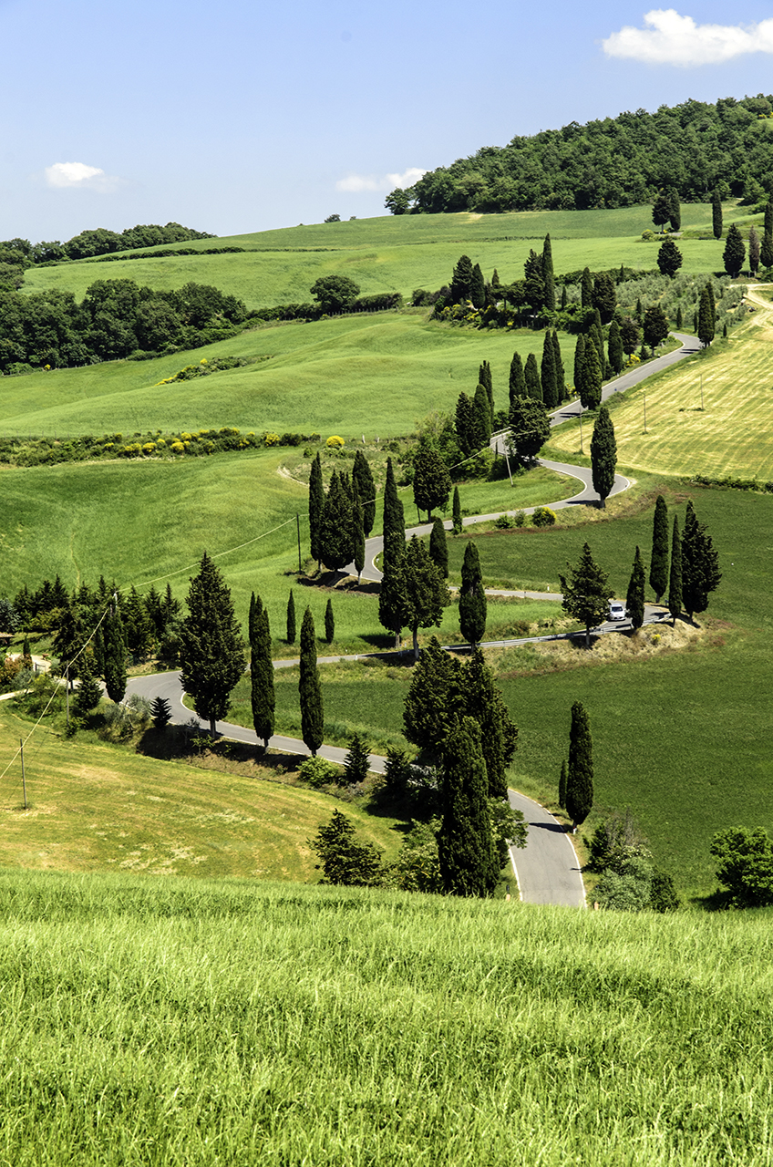 Da morda nekomu olajšam iskanje. Če želite zares magične prizore pokrajine, filmske scene, potem se opdravite v ruralne dele Toskane. V območje Val d’Orcie. Ko sva prispela v to območje so me na enkrat v glavo zadeli prizori, ki sem jih srečeval na kičastih fotografijah. Neskončna polja zelene pšenice, košene trave, detelje … Fotoaparat sem prestavil v višjo prestavo in se z avtom ustavljal vsake pol kilometra. S časom verjamem, da sem Nuši s tem že najedal. Seveda pa je pogoj, da se ne vozite le po glavni cesti, ampak zavijete tudi na kakšne makadamske ceste in ozke cestice, ki vodijo po hribovju. Največ sva raziskovala po območjih Pienze, San Quirco d’Orcia, Montalcino, Monticchiello, d’Orcia Castiglione … pač največ na območju Val d’Orcie. Obiskala sva vsa hribovita mesteca kot je Pienza, San Gimignano, Volterra, Radda di Chianti itd. Zares čudovita mesta za pogledat. Seveda pa ogromno turistov. Za izjemne naravne lepote bi omenil še eno pot. Pot iz mesta Asiago proti Sieni. Tukaj se odpirajo prizori, ki te resnično zadanejo. Ob cestah so redni odcepi, da se lahko ustavite in fotografirate.