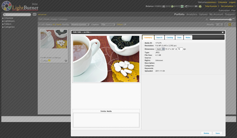 Torej kaj je LightBurner? Je spletna aplikacija, ki vam omogoča prenos in urejanje vaših stock fotografij na več agencij hkrati. Aplikacija deluje tako, da prenos fotografij uredite preko SFTP protokola, v spletnem vmesniku pa opravite vso ostalo čarovnijo. Super! Uporabite enega od vam priljubljenih FTP clientov (na mojem Macu dominira Transmit) in pretočite vsebino na njihove strežnike. Takoj sem se registriral in si ustvaril svoj zastonjski račun. Povezava z sftp strežnikom je v prvem delovala brez problema. Preveril sem še spletni vmesnik. Res je, da ni dizajnerski presežek ampak odlično služi svojemu namenu. V segmentu My Portfolio -> Channels nastavite oziroma se vpišete v vaše agencije. Podpirajo jih 14. Vse najljubše in najboljše so podprte. Takoj sem začel z vnosom. Vsaki agenciji lahko nastavite tudi dodatne nastavitve kot na primer “Automatcially submit all new uploads”, kar je čudovita opcija. Ko ste nalagali preko ProStockMasterja, je bilo pri večini agencij potem še fotografije ročno potrditi. Program je uredil prenos fotografije, ključne besede, naslov ter opis. Potrebno je določiti še kategorije. Zgoraj omenjena opcija vas tega koraka reši. Seveda tega ne nudijo vse agencije a je za vse, ki jo, to možnost mogoče aktivirati. Na iStockPhoto se poveže brez problema, pojavi pa se problem, ko se poskušam vpisati na agencijo Fotolia. Tudi ta mi je precej ljuba, saj je relativno dobičkonosna. Ena redkih, ki operira z evrsko valuto. Problem je podoben oziroma enak kot je bil pri ProStockMasterju, ko se je šlo za povezavo na iStockPhoto. LightBurner javi: “Login verification failed. Please verify your user credentials and try again.” Tudi tokrat sem najmanj 10 krat preveril, da sem vpisal pravilne podatke. Zgleda, da gre za nekakšno napako v API-ju … Ne vem. Ne dvomim v to, da bodo popravili.