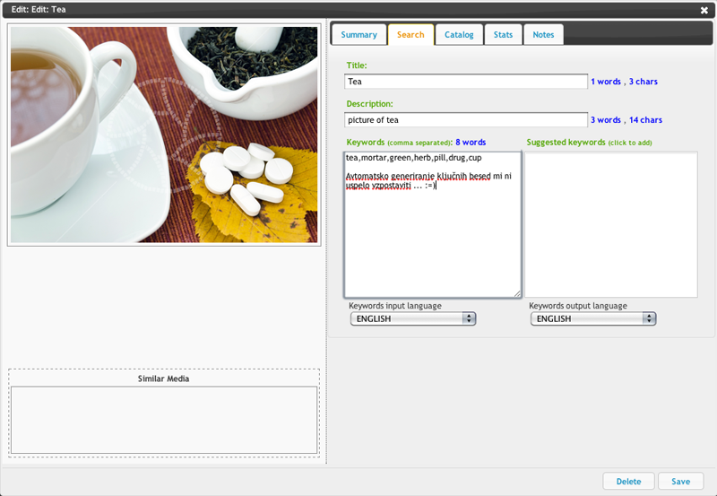 To pa seveda ni vse kar LightBurner nudi! Na obraz se mi je narisal prešeren nasmešek, ko sem videl, da se je z vsakim vnosom agencije, v meniju pojavila ikonica poleg katere je izpisana tudi vsota denarja, ki si ga trenutno lastiš pri določeni agenciji. In poleg vseh ikonic še oznaka Balance, ki sporoči trenutni seštevek zaslužkov na vseh agencijah. Zavihka Analytics se še nisem lotil, a ne dvomim, da me čaka ponovno čudovito presenečenje. Globje bom zadevo raziskal kasneje. Nalaganje na njihove strežnike deluje z zadovoljivo hitrostjo. Podpirajo generiranje ključnih besed in celo izbiro kategorij. Podpirajo generiranje ključnih besed, ampak za enkrat še nisem naštudiral, kako zadeva deluje ali pa dejansko ne deluje. Najprej morate dodati vsaj 7 svojih ključnih besed, naslov in opis, potem naj bi generacija ključnih besed delovala. Ni mi še uspelo. Če bo napaka z iStockPhoto s strani ProStockMasterja rešena, ga bom seveda uporabljal naprej, saj mi je ljubša desktop aplikacija. LightBurner je super alternativa.