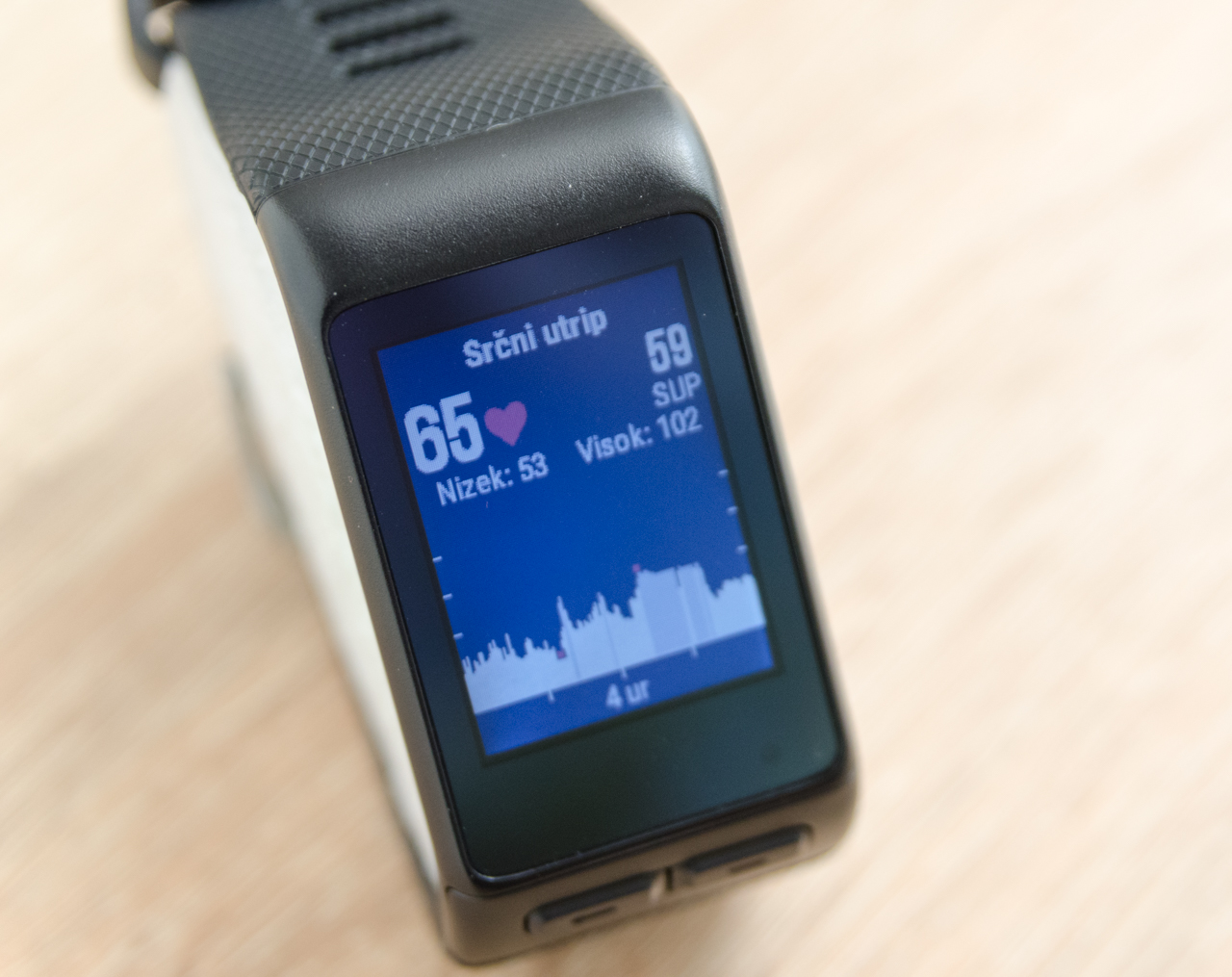 Sedaj so v modi pametne ure in tudi ta ni butasta. Seveda pa je to športna ura in ni pričakovati enakih funkcionalnosti, kot jih nudi na primer Apple watch. Garmin Vivoactive je športni švicarski nož. Poleg programov za vrsto različnih aktivnosti, spremlja tudi vaše spanje, srčni utrip ter korake in število prehojenih nadstropij skozi dan. Dejansko vas konstantno nadzira koliko aktivni ste zares. Na podlagi teh meritev si tudi izdela vaš profil oziroma statistike, ki jih lahko podrobneje vidite v vašem Garmin Connect računu. Srčni utrip se meri konstantno, na zapestju. Na podlagi teh meritev se vam tudi ažurno posodablja vaš profil o priporočenih srčnih območjih vadbe – kar se mi zdi zelo uporabno. Funkcijo merjenja srčnega utripa na zapestju se da seveda tudi izključiti.