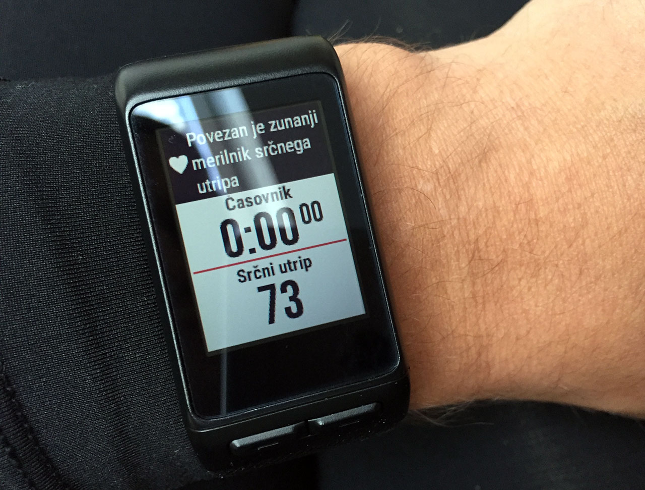 Integriran modul za merjenje srčnega utripa sem malo prej že opisal. Ker si lastim tudi Garminov pas, zaradi večje natančnosti meritve raje uporabim tega. Ker je pač pri roki. Garmin samodejno zazna ANT+ senzorje in vas o tem obvesti. Včasih je potrebno malo počakati, da se ura in senzor najdeta.