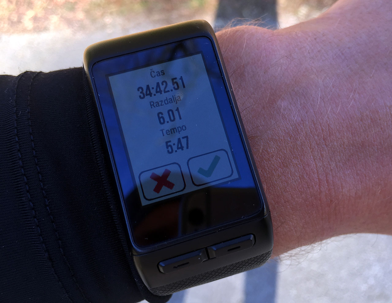 Ob koncu vadbe, konec potrdite. V kolikor je na telefonu nameščen Garmin connect, in sta telefon in ura povezana preko bluetooth povezave, se bo vadba samodejno prenesla v vaš Garmin connect profil. Nič več zajebavanja s kabli!