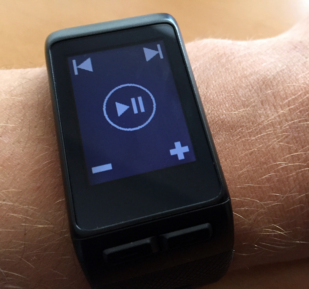 Imamo pa tudi možnost upravljanja glasbenega predvajalnika, ki ga uporabljamo na telefonu. Na uri je nameščena aplikacija preko katere lahko upravljamo glasbo.