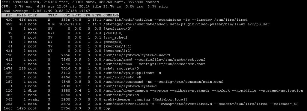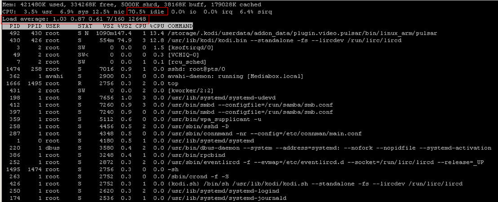Med gledanjem filma sem spremljal tudi obremenitev samega sistema. Na začetku ogleda je bil sistem precej neobremenjen. Load je znašal le tam okoli 1. Tudi poraba CPUja ni bila kritična.