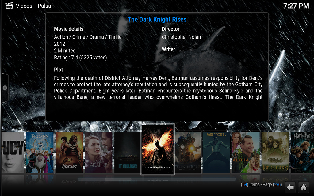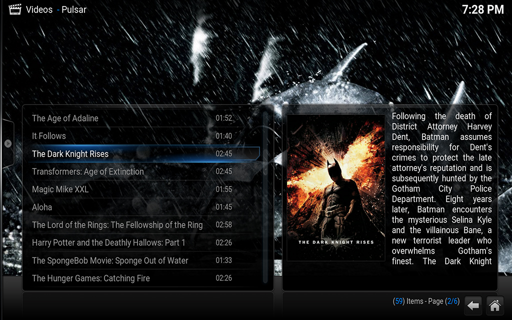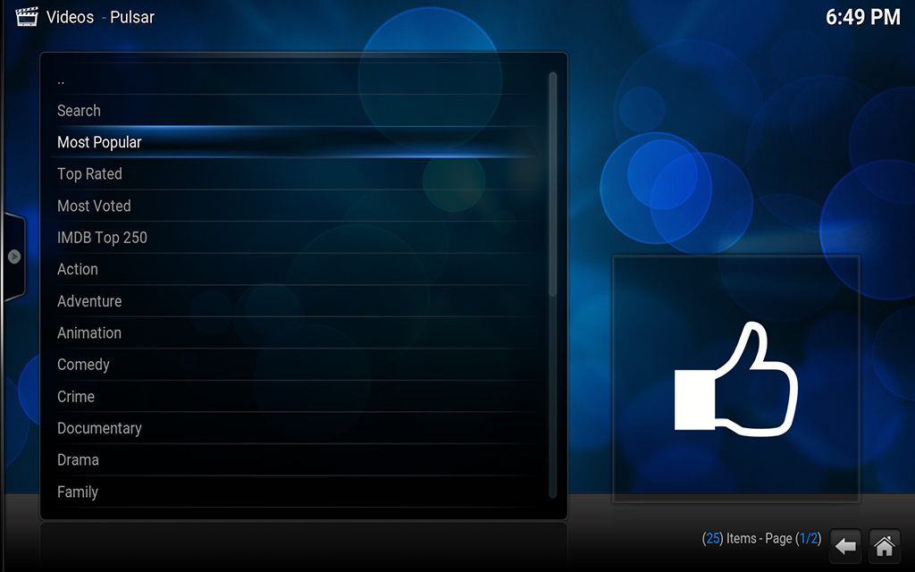Pulsar ima tudi zelo pregleden meni. Na voljo je kategoriziranje glede na žanr, čas, priljubljenost, IMDB oceno …