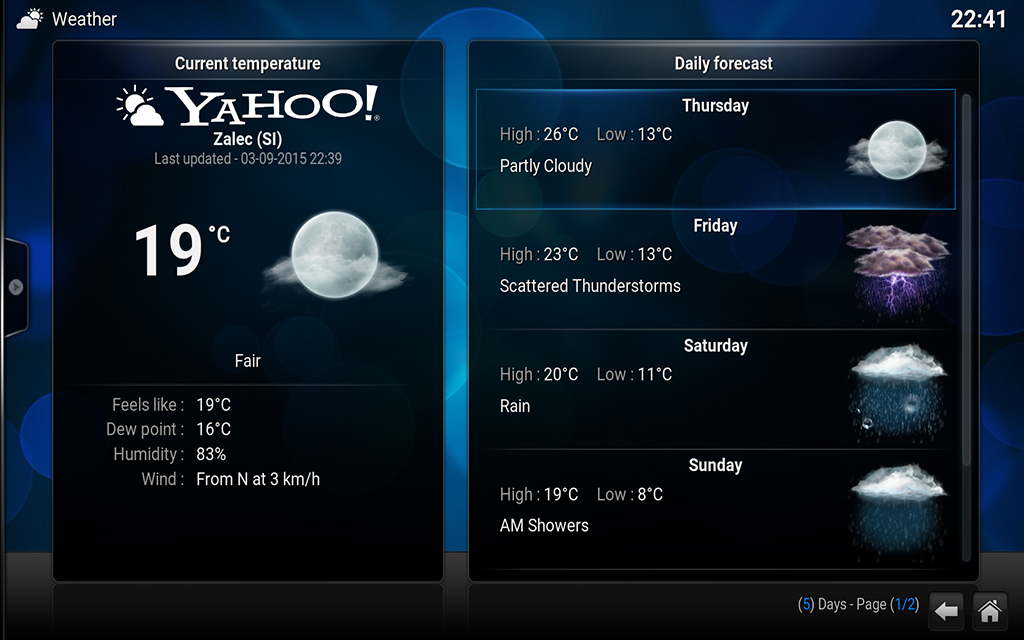 Vtičnik za prikaz vremenske napovedi in trenutnega stanja.