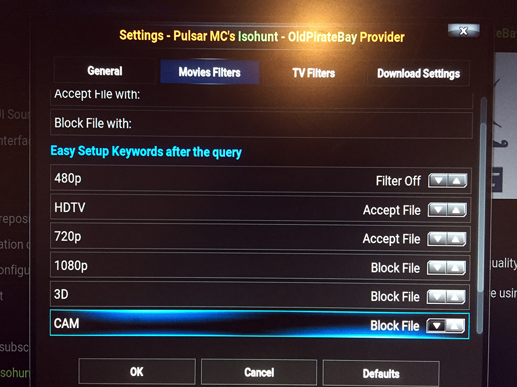 In še bolje, vsebine lahko filtriramo. Lahko preprečimo, da bi nam recimo prenašal filme v kvaliteti CAM ali kakšnih drugih formatov katerih ne želimo.