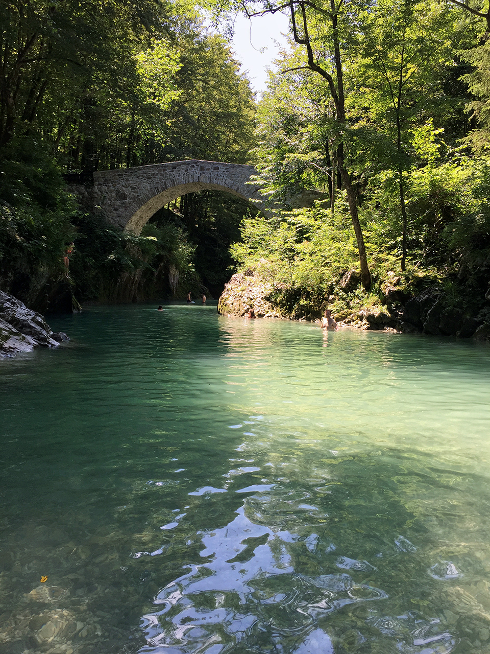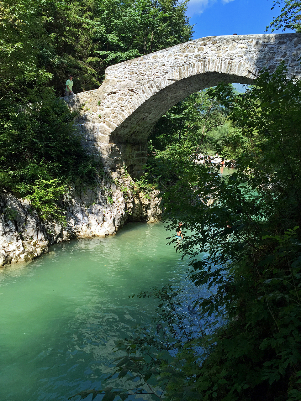 Kopanje v Soči mi nikoli ni predstavljalo težave. Malo mi je smešno, ko vidim kakšne priprave potrebujejo nekateri, da se na hitro namočijo in osvežijo. Je svinjsko mrzla, nikakor pa nevzdržna. Je pa verjetno tudi res, da ni ravno primerna za večurno namakanje. Če želite bistro vodo, ki je pa tudi dosti toplejša, potem bo Nadiža kot nalašč primerna. Zadnjič je nekdo twittnil fotografijo starega Napoleonovega mosta čez Nadižo. Takoj sem vedel, da moram to videti tudi v živo. In tokrat tudi sem. Več kot čudovito in osvežilno. In seveda skrajno lepo. Super za kopanje. Všeč mi je tudi, ker tukaj ljudje imajo nekaj spoštovanja do okolja. Raznih odpadkov v naravi skoraj ne vidiš.