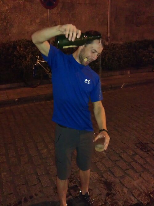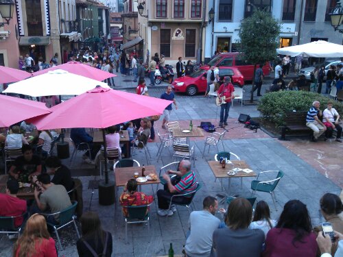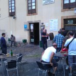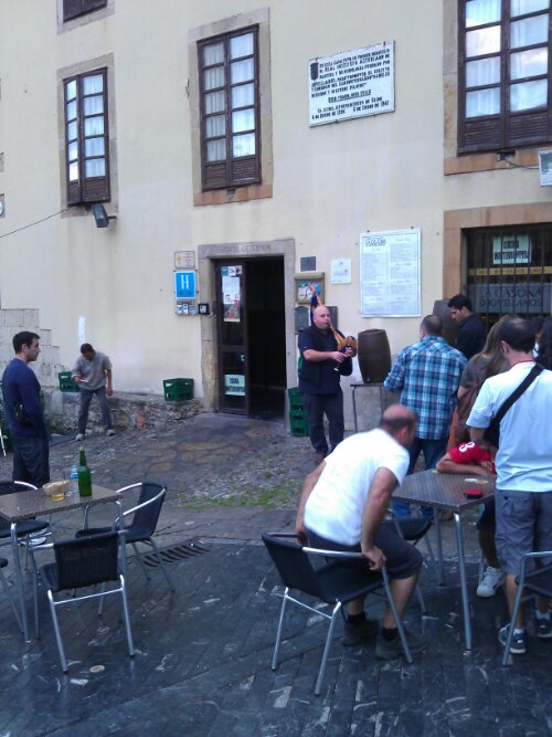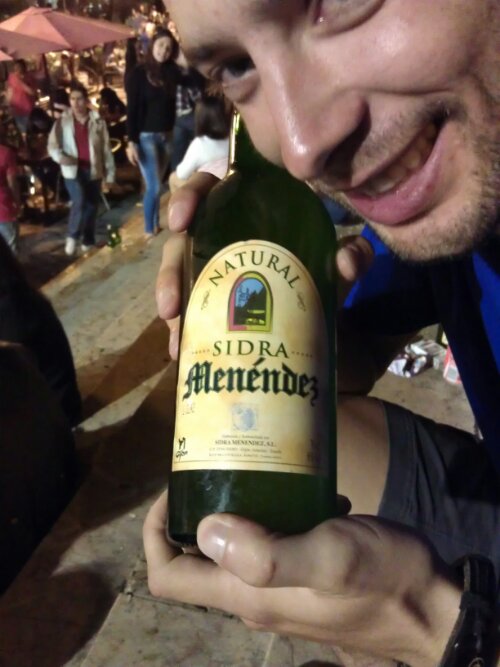 Iz zgornjega dela mesta se je slišala glasba v živo. Dude in harmonika. Na drugi strani pa električna kitara in zafušan glas. Nekaj se je dogajalo. Izkazalo se je, da sva prišla ravno na nekakšen praznik, ko so vsi ljudje na ulicah in rajajo. Pijejo ogromne količine jabolčnika (sider) in jedo sončnična semena. Midva sva pila vino. Kmalu sva bila že malce okajena in morala sva poskusiti tudi njihovo tradicionalno pijačo. V gostilni si dobil kozarec v katerega so vrgli frnikolo in pa steklenico jabolčnika. Najprej nisva vedela kaj za vraga naj narediva s frnikolo. Nato nama je domačinka razložila, da jo kasneje vrneš in dobiš nazaj del denarja. Torej gre za varnostno aro za kozarec hehe. Steklenica jabolčnika je stala mislim, da 5 eurov. Drago kot pes! In tudi točenje pijače ni običajno. Steklenico moraš dvigniti visoko v zrak – idealno nad glavo – in jo točiti v kozarec. Ni ravno najlažje, še posebej, če si malce pijan. Fora takšnega točenja mislim, da je zaradi okusa. Naroči se le mala količina in takoj spije na eks. No, jabolčnik mi bo vedno le jabolcnik. Torej zanič. Nadaljevala sva raje s pivom.