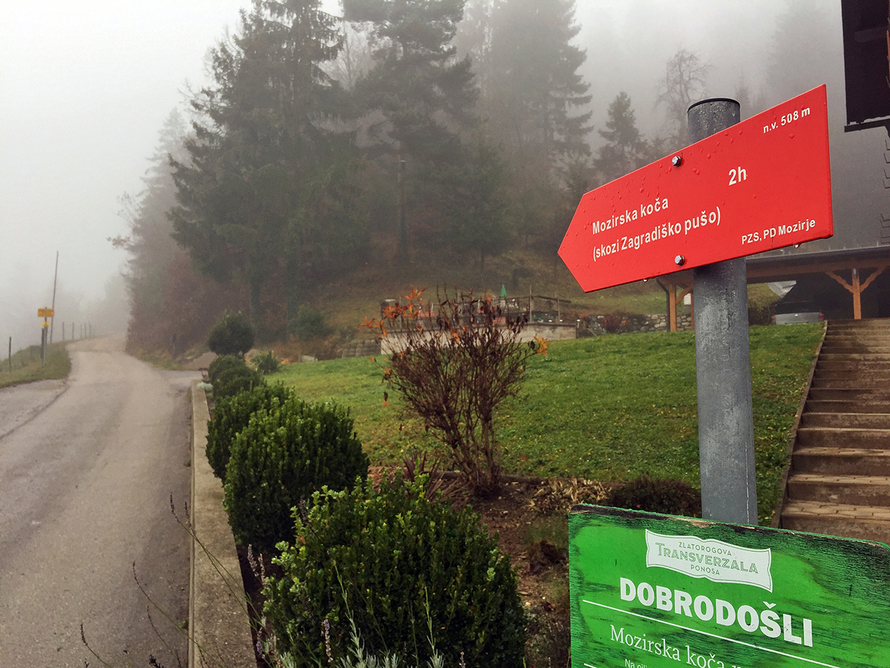 Štartala sva v kraju Žekovec, ki se nahaja nekoliko nad Mozirjem. Tabla je kazala, da bova hodila nekje dve uri in v smeri asfaltirane ceste. Na portalu hribi.net pravijo, da je za to pot potrebno dve uri in petnajst minut.