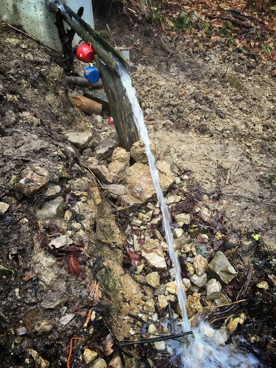 V objemu blata se v okrepčitev ponudi izvir kristalno bistre vode kjer se lahko človek napoji s prvovrstno slastjo. Vodo. Če sem čemu hvaležen aktualni vladi, je to vpis pravice do pitne vode v ustavo. Ne predstavljam si, kam bi pripeljala privatizacija vodnih virov na dolgi rok. Mislim, da gre za izredno velik korak v pravo smer, ki je ogromnega pomena. Vodo velikokrat jemljemo preveč samoumevno in ne dvomim, da bo prišel čas, ko se bo svet soočal z resnično veliko krizo glede pitne vode. Relativno velik del sveta se že danes. No, tukaj so nastavili celo skodelice :). Zastonj!