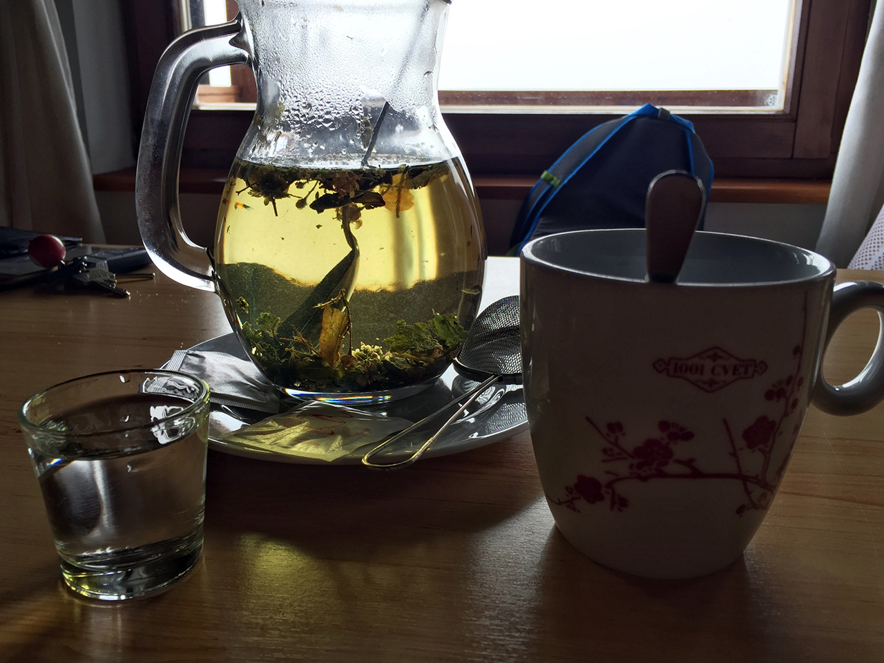 Nekako se mi zdi, da v teh hribovskih kočah do danes še nisem srečal skrbnikov/natakarjev, ki bi bili pezdeti, torej zadrti, tečni in brezbrižni. Večinoma naletiš na nasmejane in prijazne ljudi. Čaj imajo domač, sami ga naberejo in ga dajo tudi pošteno količino, za male cekine. Pojedla sva še kos štrudla in zvrnila štamperl šnopca.