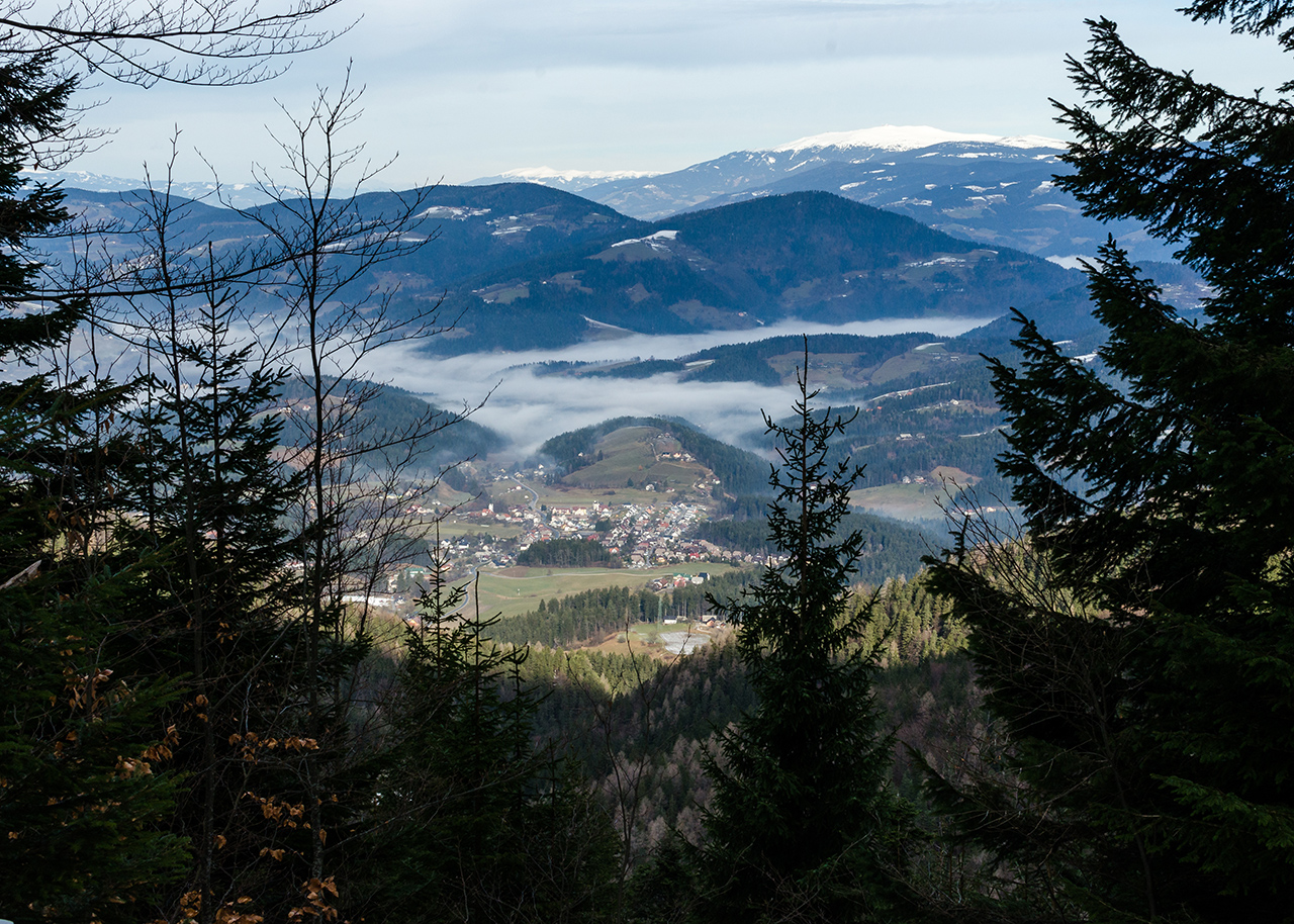 Na vrhu je bilo megleno kot svinja, a je veter na trenutke megle tudi razpihal. Doma na Uršlji gori se je komaj kaj videlo.