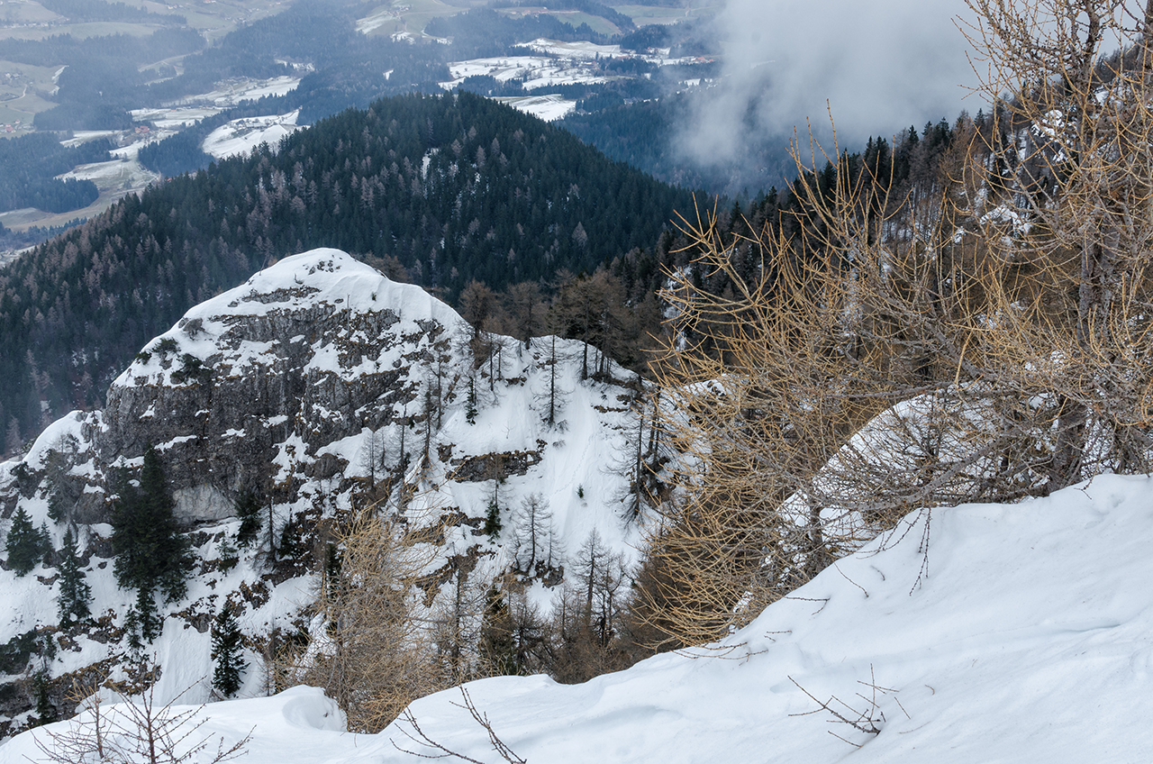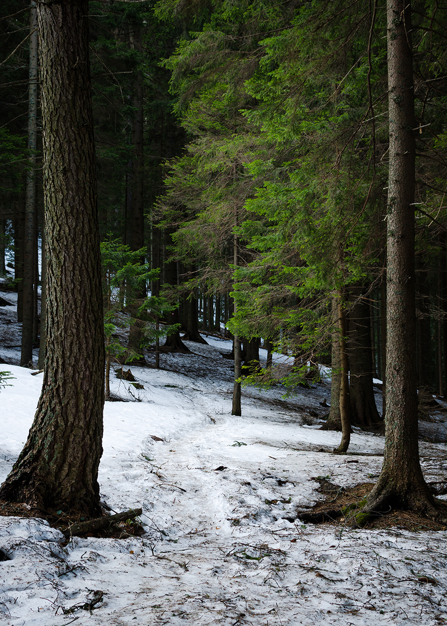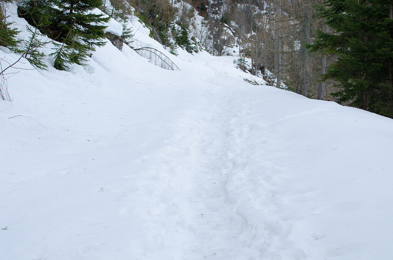 Po nekaj hoje, se je pričel kazati tudi sneg, sprva samo zaplata tu in tam, kmalu pa je postal stalnica. Ne dolgo nazaj ga je moralo biti veliko, tokrat pa ga je bilo ravno toliko, da mi še ni bil nadležen. Nikoli nisem rad gazil po snegu, vsaj dalj časa ne.