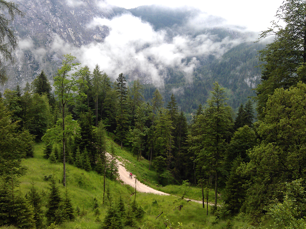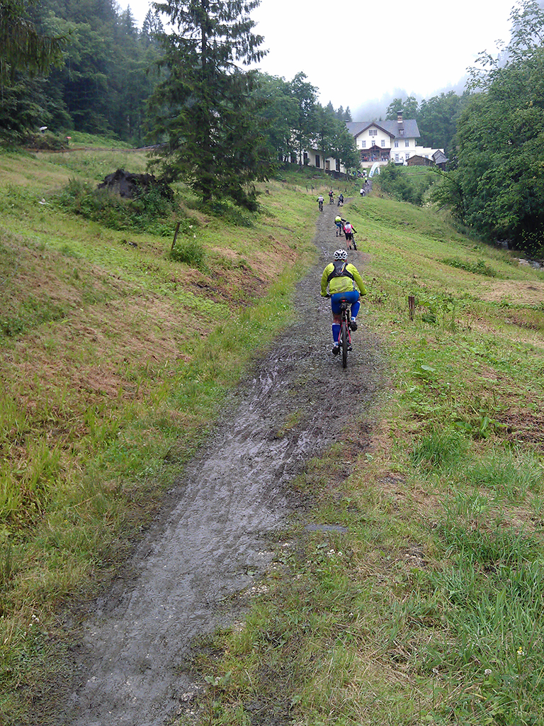 Že dolgo časa nazaj sem slišal zgodbe o neverjetnih strminah, ki vodijo na Salzberg. Ko smo prispeli pred vznožje, so se kmalu izkazale za resnične. Strmine so postajale precej impresivne. Zaradi dežja pa je bilo vse še veliko težje. Po približno 1/3 smo začeli v večini kolesa riniti. Kolesarjenje se je zdelo nemogoče, razen izjem, ki so dokazovale, da je mogoče. Vsa čast tistim, ki so zmogli. Potem pa slavna strmina, ki vodi na 1500 metrov visok vrh Roßalm-a. Naklon naj bi znašal neverjetnih 35 stopinj. In kar je najbolj neverjetno – zadeva je asfaltirana. Ni mi jasno kako … :). Še enkrat, vsa čast tistim, ki so zmogli zvoziti celotno pot do Roßalm-a.