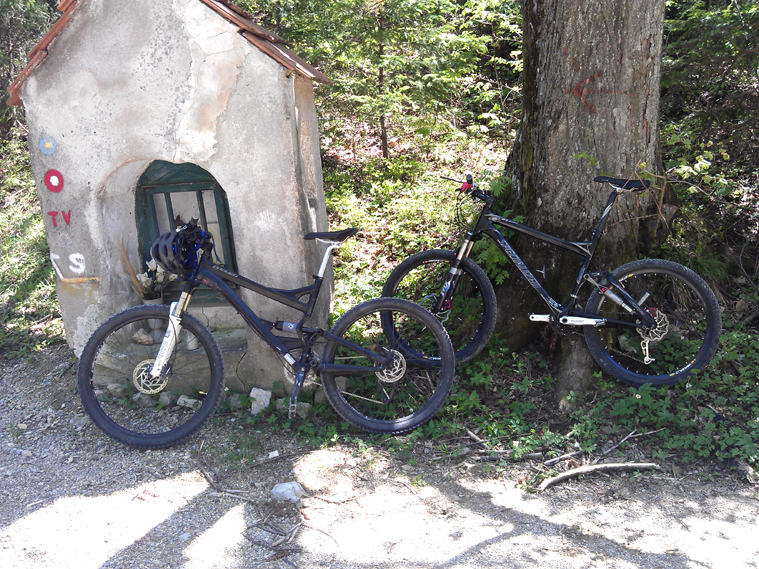 Prijetna in relativno hitra turica. Popolna za kakšno lepo nedeljo. Že lani sem to turo prevozil z Daliborjem. Kolikor se spomnim, naju je lani pošteno utrudila. Letos pa moram priznati, da sem presenečen, saj me ni pretirano utrudila. Mogoče je tudi tu nekaj prispeval fitnes. Ne dvomim pa, da je ogromno prispevalo tudi novo kolo, ki je po zaslugi karbona zares občutno lažje in boljše v vseh pogledih. Tudi geometrija je prirejena za lezenje v hrib. Spusti so sedaj še večji užitek in čisto na drugem nivoju. S tem nakupom sem imel ogromno srečo saj sem dobil konkretno kolo po zares ugodni ceni. Pot je bila letos nekoliko bolj zahtevna in adrenalinska kot lani saj je potekala po malce drugačnih poteh. Lani sva kar nekajkrat zašla iz poti in iskala pravo pot. Tokrat sva se na pot odpravila z Tomažem. Bila je lepa sobota, sonce, ne preveč vroče. Idealno za kolesarjenje. In malo sem tudi že naveličan teh eno-urnih poti na Šmohor, Celjsko Kočo … Paše še kaj daljšega. Letos smo rekli, da bomo vozili veliko novosti in daljših hribovsko/gorskih tur. Če sem odkrit, mi še manjka malo jajc in izkušenj. Ampak je vedno bolje, te pridobivaš z vožnjo.  Tokrat mi je na nekaj delih poti postalo kar precej vroče. Sem še kar “frišen” kar se tega tiče. Škoda, ker tega dela poti nisem nič poslikal, sem bil prezaposlen z vožnjo in misijo “ne se zlomit”. Tokrat sem si rekel, da ne bom pretiraval in se ne bom prekuril. Na poti hočem uživati. Tako sem si nadel Polarko in držal srčni utrip v aerobnem stanju. In res se je poznalo. Pot mi sploh ni delala težav. Imel sem to navado, da sem se vedno zagnal [tooltip title=”Info” content=”Na bele jetre pomeni do konca. Do skrajnosti oziroma do svojih skrajnih mej.” type=”info” ]“na bele jetre”[/tooltip] in do konca crkaval. Zjutraj sem se tudi dobro najedel, kar me je napolnilo z energijo. Tomaž ni jedel nič, kar se je vmes tudi poznalo. K sreči sem imel en power gel, da ga je malo nabilo z energijo. Potem je šlo naprej brez problema.