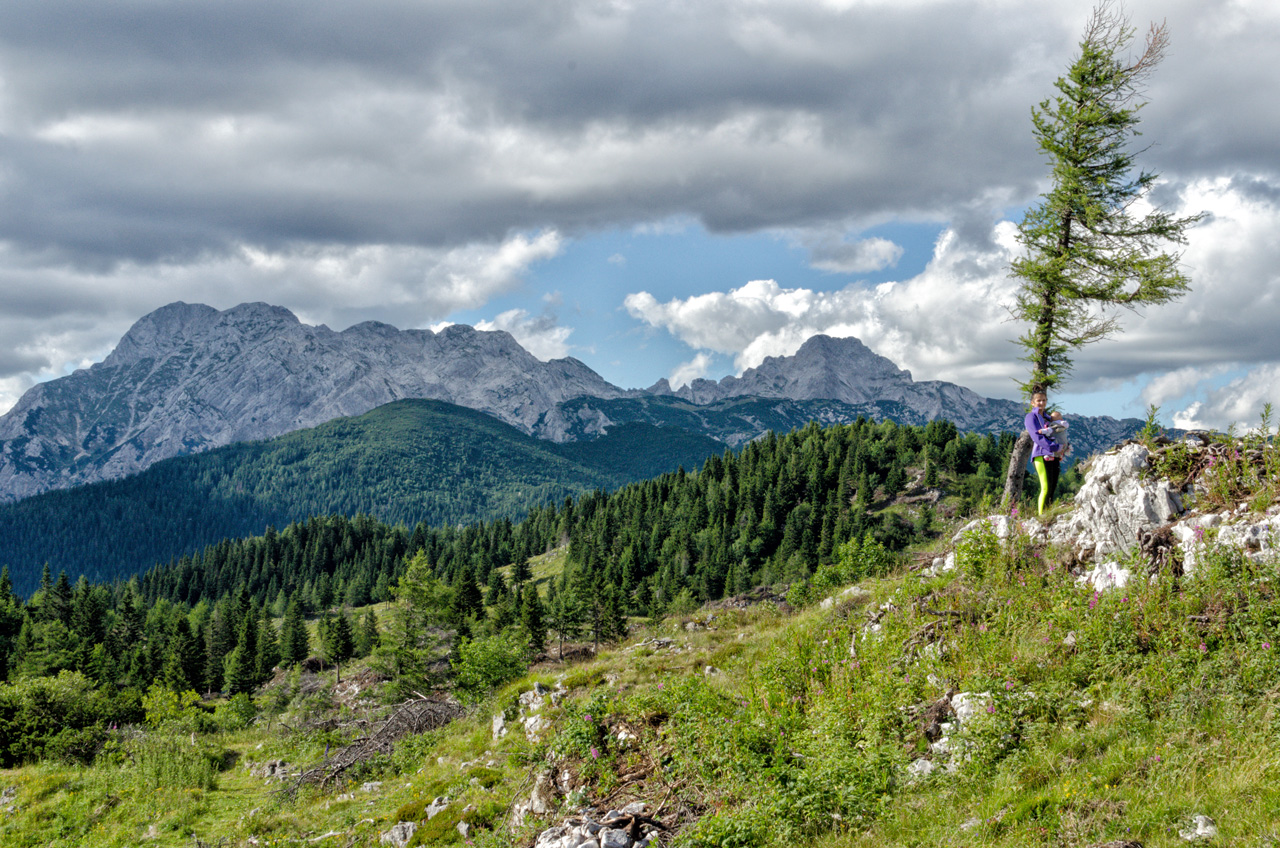 Na vrhu se odprejo tisti čudoviti pogledi na planšarske pašnike in bajske kočure, ki krasijo turistične brošure. Glede na to, da je bila sončna nedelja, ravno prav hladna, je zanimivo, da ni bilo videti skoraj nobenega razen krav, pričakoval sem gužvo. Prav poseben filing pa je, ko tam na epskih travnikih, gledaš svojo izbranko kako doji tvojega otroka. Prekleto lepo se je bilo uleči na travnik in študirati o ničemer, gledati v oblake in poslušati kravje zvonce.