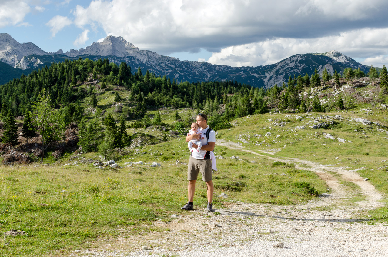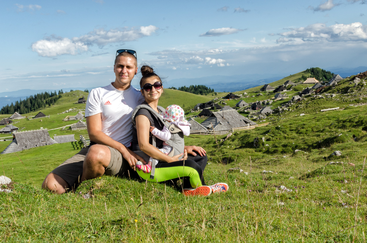 Kaj naj rečem? Velika planina je super, zelo lep kos Slovenije, nisem srečal niti ene v petkah, niti pozerjev ni bilo, smeti še manj. Očitno je šlo le za moje blodnje in posploševanje. Videl sem nekaj gorskih kolesarjev, ki so upravičeno uživali saj je destinacija za kolesarjenje vrhunska. Upam, da se v kratkem vrnem z gorskim kolesom. Za hojo je pot prijetna in nič zahtevna. Nuša je – kljub tečnarjenju s ponudbami, da lahko jaz -, vztrajala, da Nežo nosi ona. Tale “kenguru” ali kako se reče tej torbi, je izredno priročna zadeva.